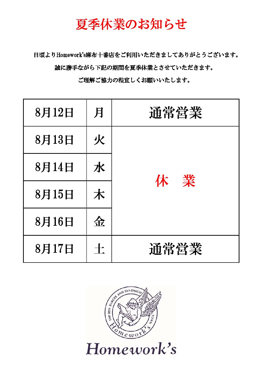 Homework’sは広尾と麻布十番に店舗がございます。また姉妹店のthe pantry(ザ・パントリー)が丸の内にございます。ぜひお立ち寄りください。